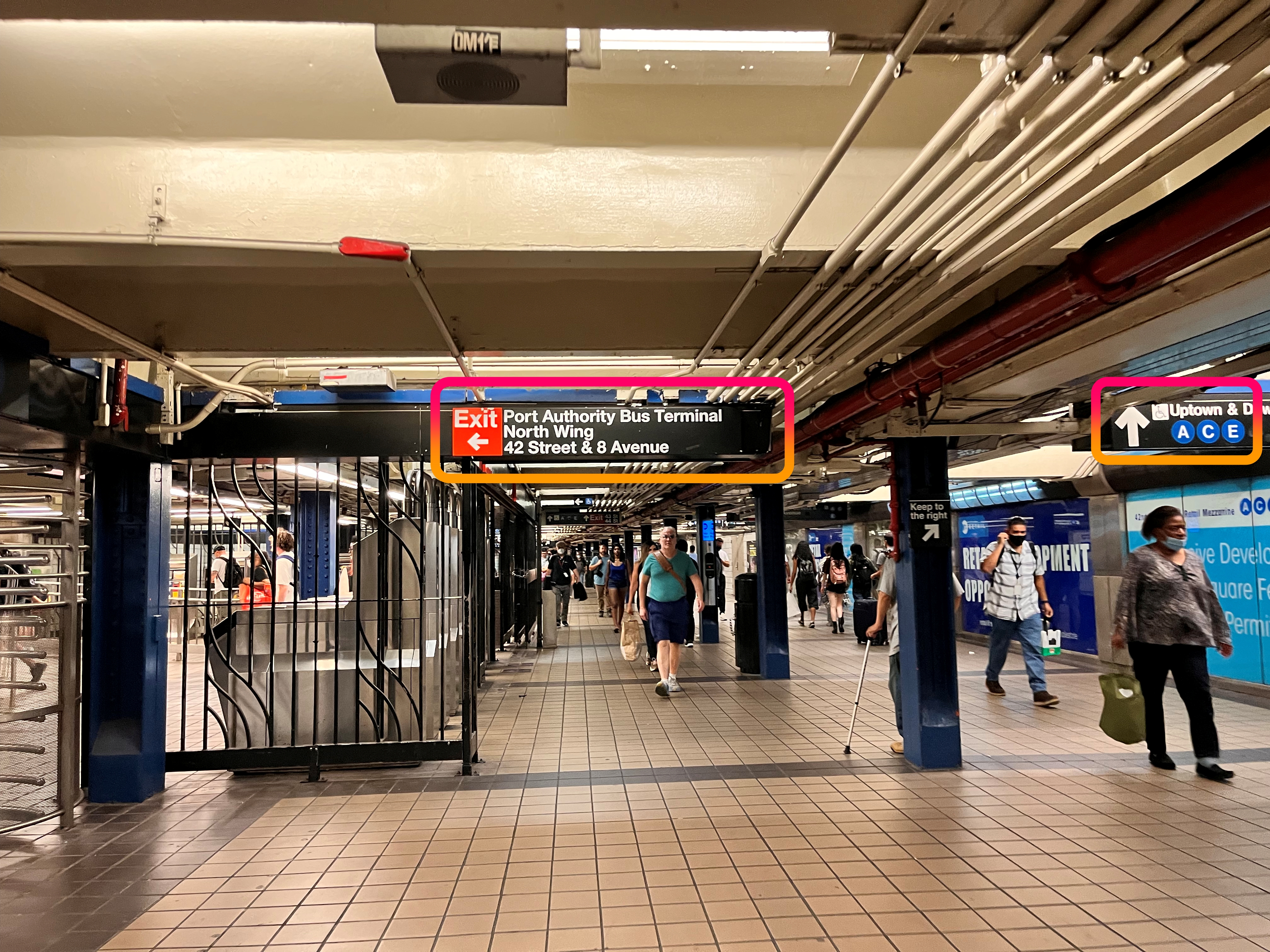 맨하탄(Manhattan) 버스 종점인 "Port Authority Bus Terminal"에서 하차후 지하철(Subway) "Uptown E" 표지판을 따라 걸어 갑니다.